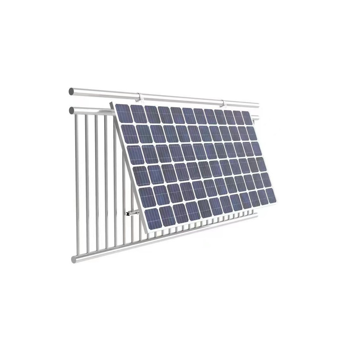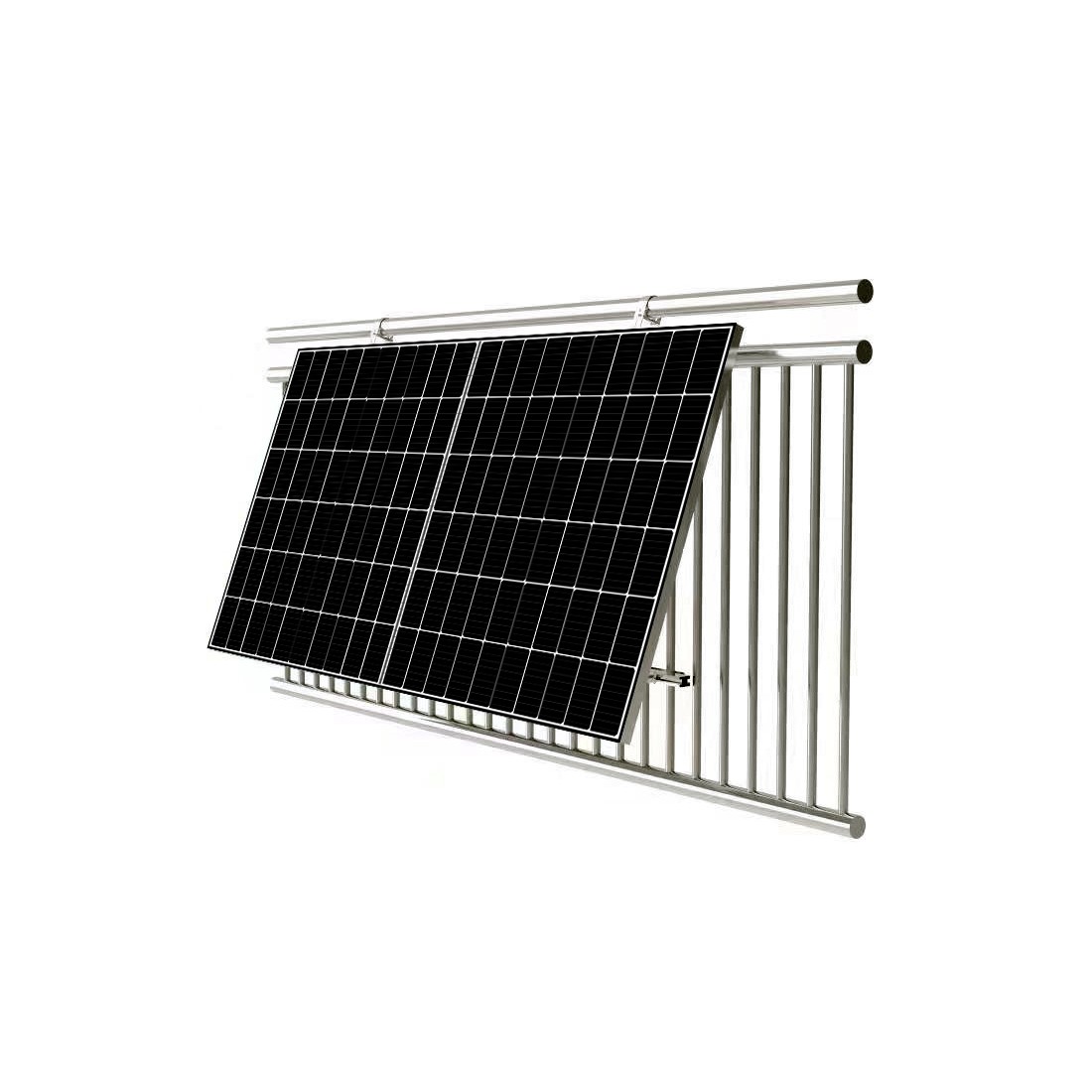 Il set supporto da balcone, comprende tutto il necessario per il rapido fissaggio di un pannello fotovoltaico a balcone o ringhiera o parapetto.